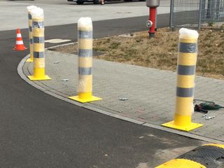 Bei Parkplatzausrüstung sind Parkstopper und Rammschutz ein sehr guter Mittel um weitere Beschädigungen zur Vermeiden.